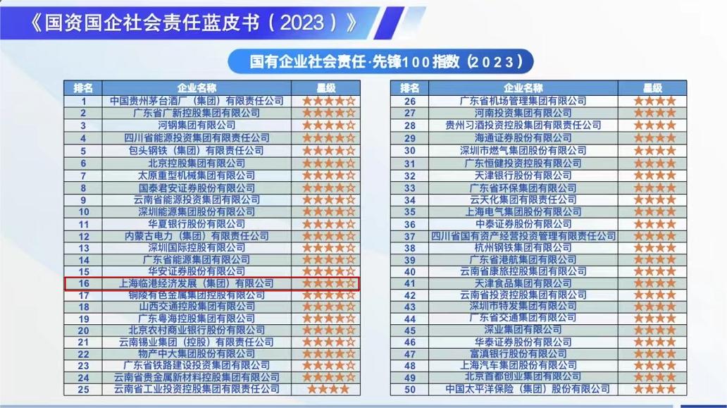 临港集团入选“国有企业社会责任·先锋100指数(2023)”榜单,排名第16位。