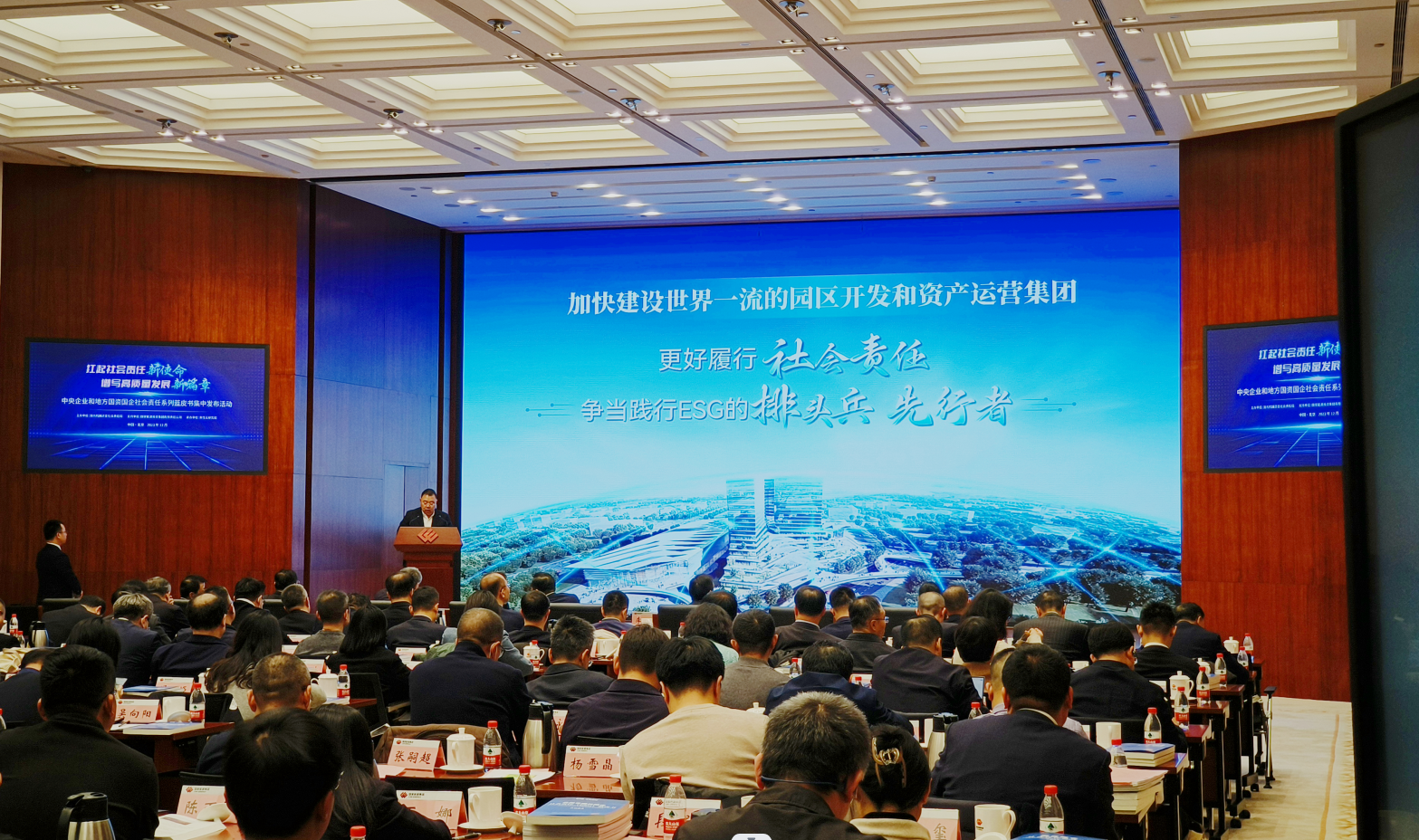 2023年12月22日,由国务院国资委社会责任局主办,国家能源集团支持,责任云研究院承办的“中央企业和地方国资国企社会责任系列蓝皮书集中发布活动”在北京召开。国务院国资委、中国社科院、中央企业代表、地方国资国企代表、主流媒体等各方嘉宾参加会议。临港集团和茅台集团作为唯二两家地方国企做交流发言,集团党委书记、董事长袁国华作为地方国企代表作《践行国家战略,履行临港责任,建设世界一流高科技园区》主题发言。
