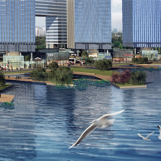 始终秉承低碳、循环、可持续发展的思路,坚持“生产、生活、生态”三生融合的发展理念,以满足园区、产业和人的需求,不断地推进产城融合,努力打造低碳园区、智慧园区、共享园区。