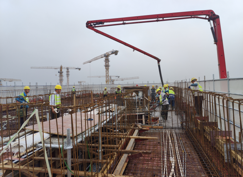 自项目开工建设以来,浦东新经济平台、临港书院公司、各参建单位齐抓共管,紧密围绕“安全第一、质量优先、注重速度”方针,克服政策调整、天气因素等带来的不利影响,制定周密的施工计划,合理安排施工工序,采取目标分解、签订责任计划、优化方案等多项措施,保证了工程建设的有序推进,如期迎来了主体结构封顶这一重大里程碑节点,这一切离不开每一位建设者的辛勤付出。