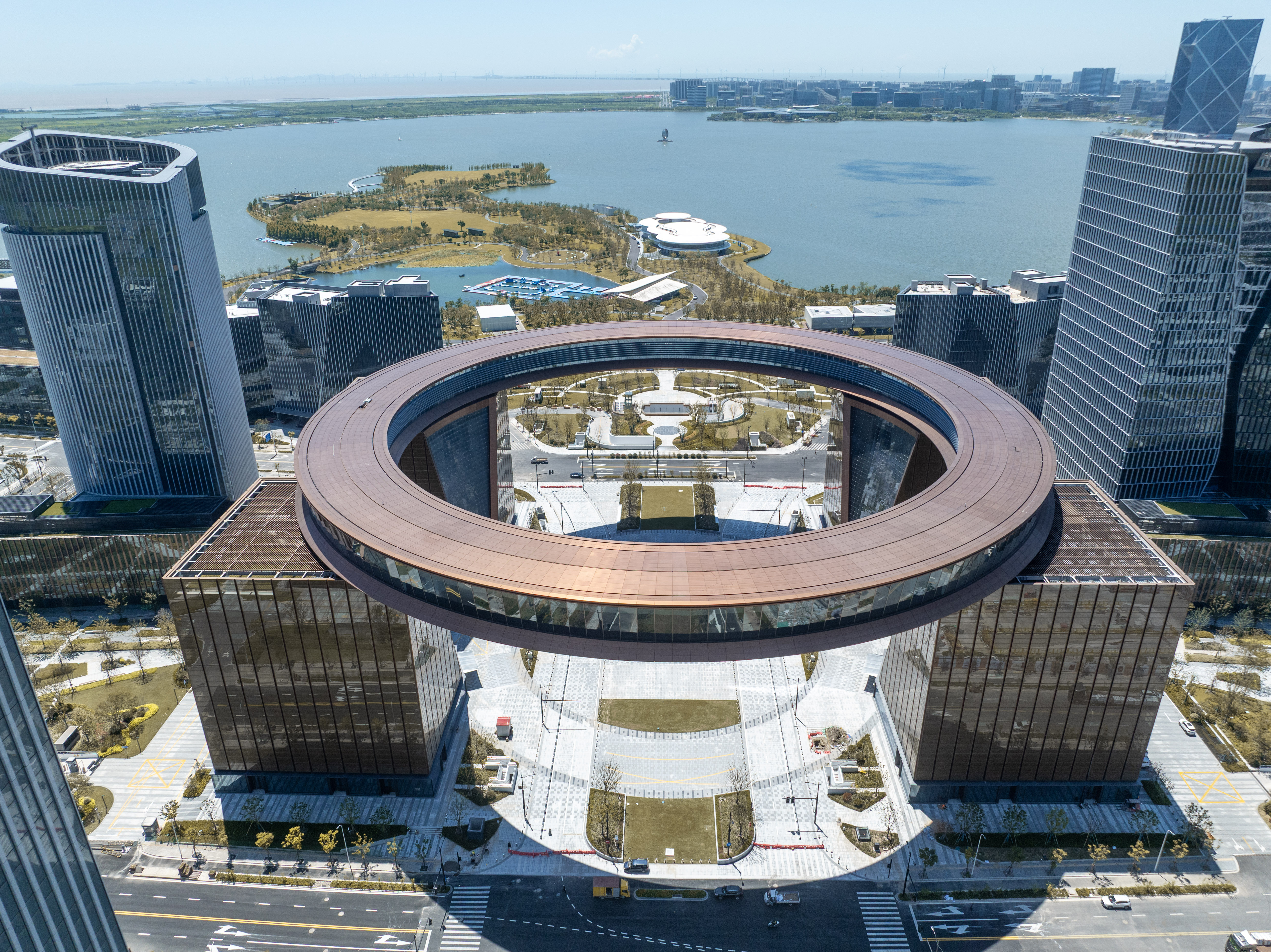 位于临港新片区滴水湖金融湾的核心地标——“荣耀之环”,建设工作已于近期基本完成,即将投入使用。据悉,该项目由临港新片区经济公司开发建设。