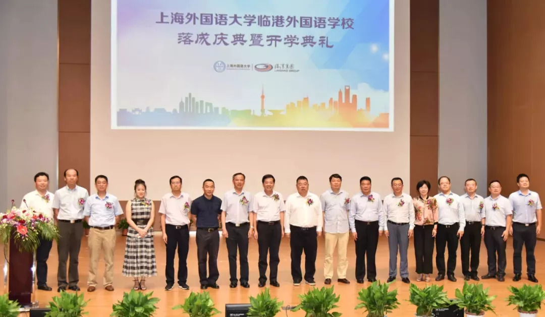 临港管委会党组成员、副主任吴晓华,临港集团党委副书记、总裁袁国华,上海海洋大学党委书记吴嘉敏,上海海事大学党委副书记、副校长王海威,奉贤区教育局党委书记、副局长陆琴,奉贤区教育局局长施文龙,临港集团副总裁朱伟强,临港集团副总裁翁恺宁,中信银行上海分行行长贺劲松,上海外国语大学党委办公室主任、基础教育管理办主任李仁东等领导和嘉宾出席。临港管委会、奉贤区教育局、四团镇、南汇新城镇、泥城镇、临港集团系统内各开发公司、临港教育医养专委会、产业区部分企业的领导和代表,中科建设等校方合作单位的代表,及首批招生的新生和家长齐聚一堂,共同见证了上外学校发展的历史性时刻。