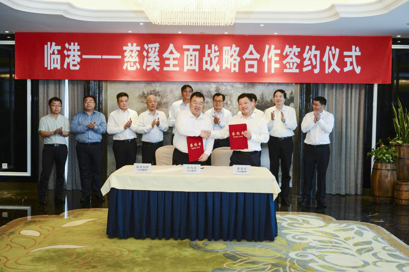 临港集团党委副书记、总裁袁国华,慈溪市委副书记、市长项敏代表双方签约。宁波市政府秘书长张良才, 慈溪市委书记高庆丰,市领导孙百南、陈杰峰、胡海达、邹柏涌、岑剑国等出席仪式。