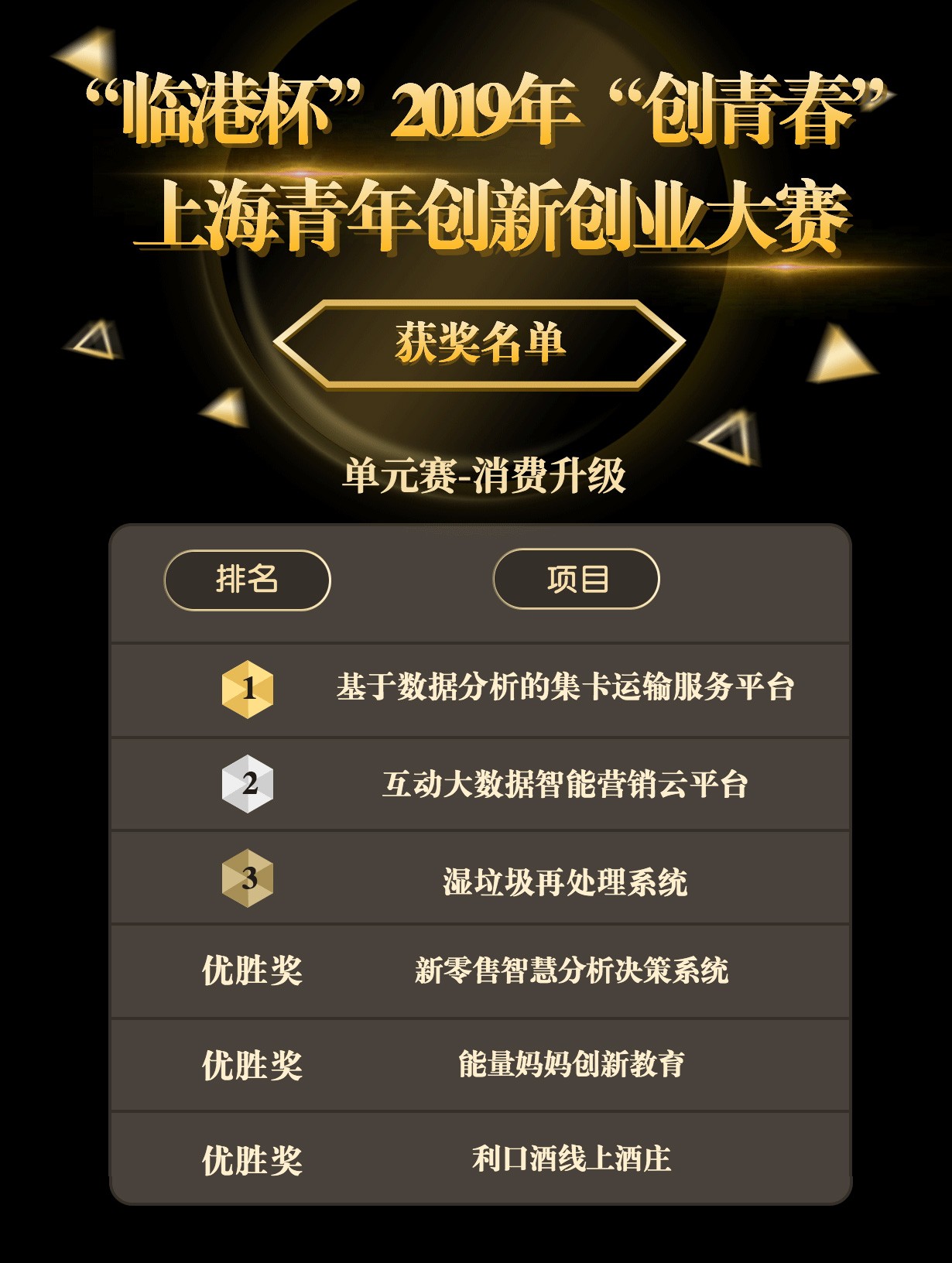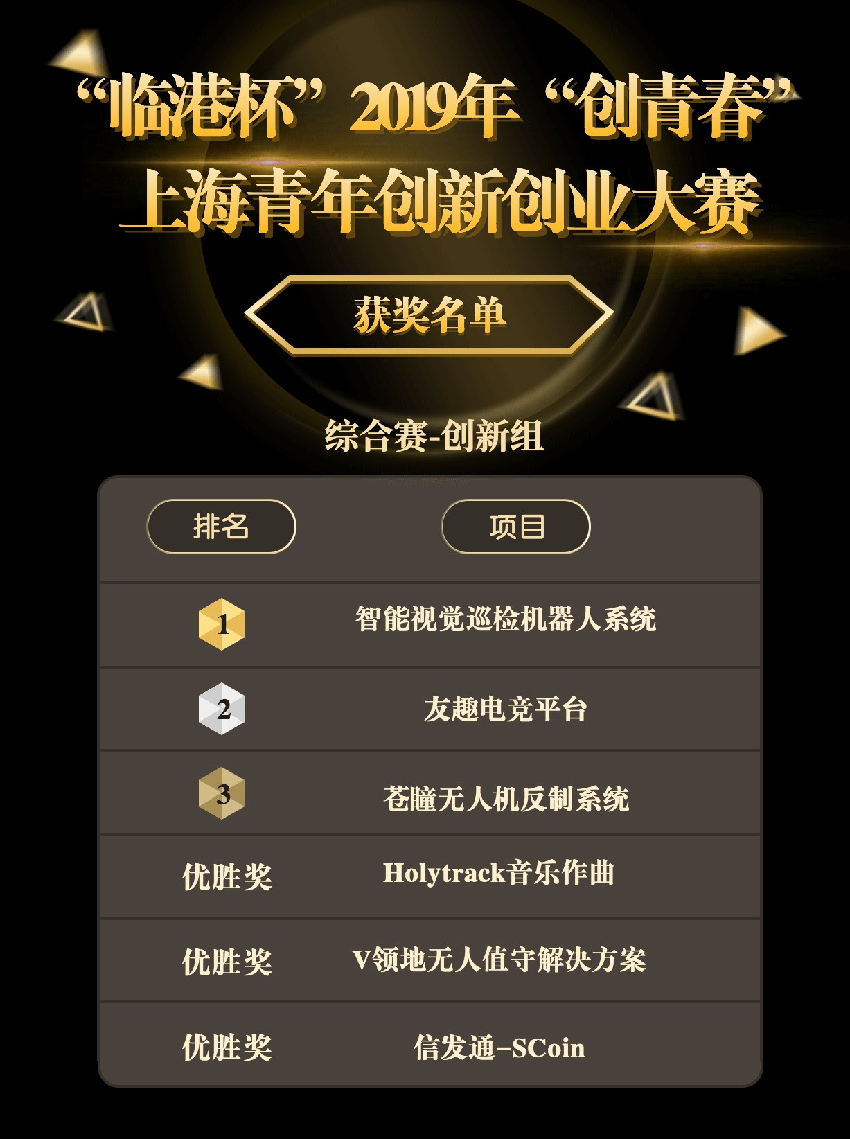 8月27日,由共青团上海市委员会、上海市科学技术委员会、上海市互联网信息办公室、上海市经济和信息化委员会、上海市商务委员会、上海市人力资源和社会保障局、上海市农业委员会、上海市归国华侨联合会、上海市青年联合会、临港集团联合主办的“临港杯”2019年“创青春”上海青年创新创业大赛颁奖仪式在上海安莎国际会议中心顺利举办。本届大赛共收到千余个项目报名,共381个项目进入了复赛,93个项目挺进决赛,最终9个赛组角逐出了54个获奖项目。