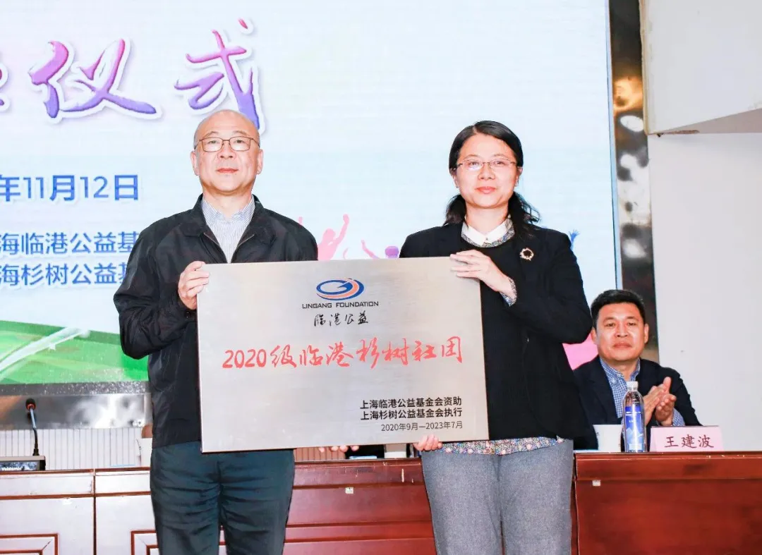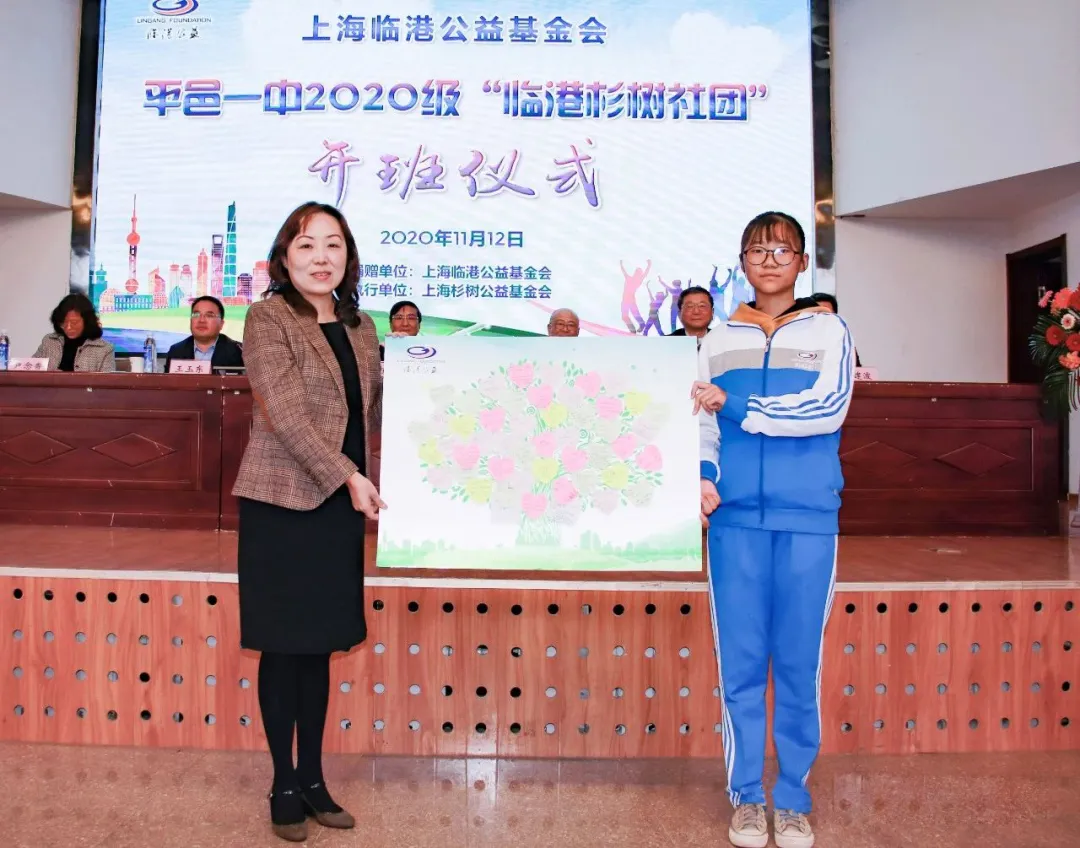 11月12日,上海临港公益基金会在山东省平邑第一中学资助的第三个临港杉树社团—— 2020级临港杉树社团正式开班。上海市企业联合会会长、临港公益基金会名誉会长刘家平,临港公益基金会会长邵正平,临港创新管理学院院长、基金会重大项目评审专家王春华,易盟集团董事长、临港公益基金会理事王建波,临港浦江国际科技城公司党委书记范黎,临港公益基金会秘书长陈英,上海临港公益基金会募资部部长邰惠青以及来自临港浦江国际科技城的12位志愿者代表们参加开班仪式。