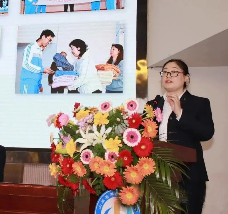 邵正平向平邑一中党委委员、文化路校区校长华丽授2020级“临港杉树社团”牌,向2020级临港杉树社团班主任宋磊授旗。
