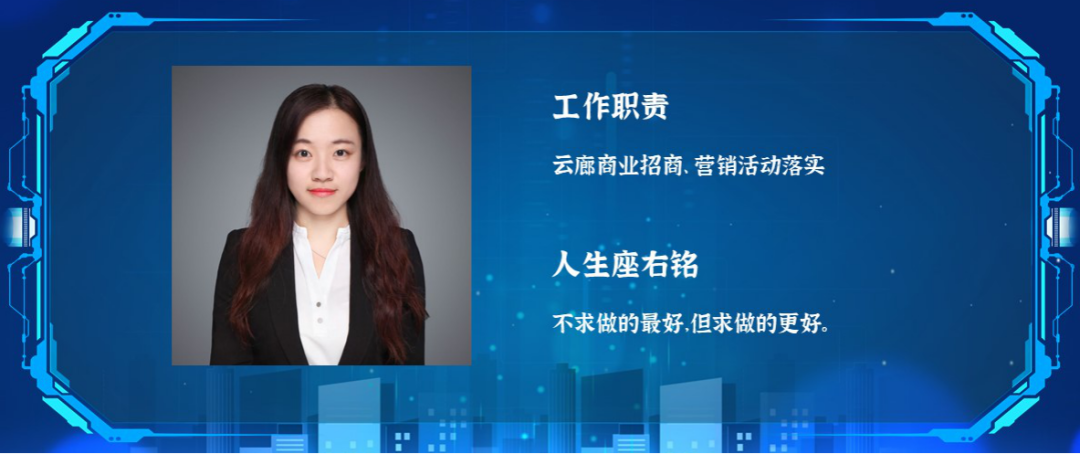 她叫徐倩, 2014年加入临港松江科技城,是一名90后的中国共产党员。她曾是一名成本会计,在2018年公司成立云廊商业小组时,有幸成为了其中的一员。新的身份、新的视角、新的挑战。无论是个人、团队还是公司,城市型商业都是一个全新的领域。没有商业品牌资源储备、没有商业运营经验、更别提市场发展趋势的思考。他们把自己定义为开拓者,立志要为产业园区赋能,塑造产业园区的新DNA。团队利用3个月的时间,组织了多次密集培训、考察,不计其数的讨论会,熟悉商业市场环境、目标客群的分布与特点,学习商业定位招商运营等系列知识…不断地大胆尝试和探索、拓宽社交圈,如今,团队已储备了近千家品牌资源,逐渐地被更多同行、同事所认可,在钢筋水泥间兴奋地向客户憧憬未来。