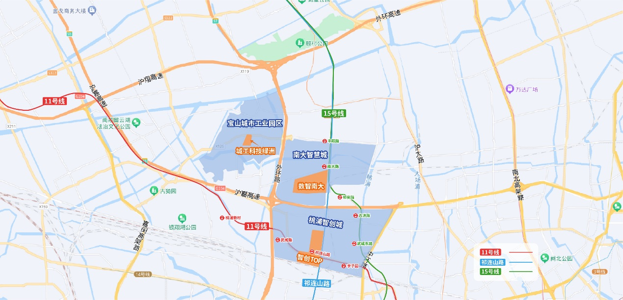 西北片区成立后,将提升其在上海市域的整体显示度,也将强化“沪苏直联”桥头堡的作用。桃浦、南大地区南北毗邻,是市域成片开发、不可多得的“大衣料子”;东西向则有城工园向西延拓,3个园区相互直线距离仅2-4公里,呈等腰三角布局。轨交15、11号线地铁上盖,中、外环线与沪嘉高速贯穿,在沪苏衔接的重要枢纽上交往极为便利。