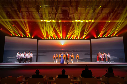 欣逢时代,赋予了希望,凝聚了力量,于筚路蓝缕而薪火相传。感恩机遇,滋养了春泥,丰润了水渠,让我们甘于平淡的奉献。激昂的节拍,振奋了心怀,这,就是——我们的舞台!”