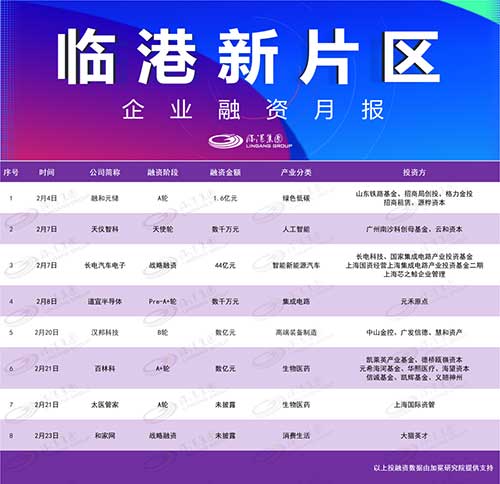 2月,临港集团重点服务的3家企业获得新一轮融资,这三家企业分别系道宜半导体、汉邦科技和百林科。其中: