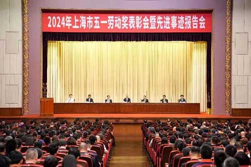 今天,2024年上海市五一劳动奖表彰会暨先进事迹报告会在上海展览中心友谊会堂举行。会上表彰了165个上海市五一劳动奖状、490个上海市五一劳动奖章和467个上海市工人先锋号。