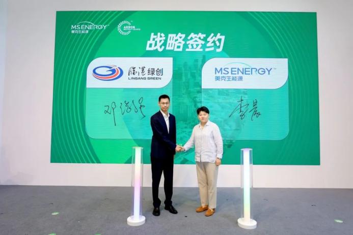 展会现场,美克生能源与临港绿创公司签订战略合作,就光储项目建设、储能项目建设、能碳数字化管理以及零碳园区的打造等多个重要领域达成了深度合作。展望未来,美克生能源与临港绿创公司将充分发挥各自优势,携手共进,同向发力,为国家“双碳”目标添力赋能。