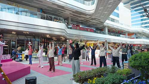 云廊内街还不定期地举办各种活动,前不久一场针对年轻白领的“春日唤醒局”如约而至,八段锦、融合瑜伽、手冲咖啡品鉴活动等,让打工人的生活充满了惊喜。