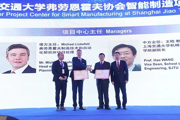 此次签约标志着德国弗劳恩霍夫协会在中国的第一个科研机构完成筹建、正式成立。上海交通大学弗劳恩霍夫协会智能制造项目中心是德国弗劳恩霍夫协会在中国正式批准的第1个、全球第10个项目中心。该项目中心由弗劳恩霍夫协会官方授权,法律定位为从属于上海交通大学的成本中心。此前,弗劳恩霍夫协会在全球共有9个项目中心;其中亚洲3个(日本2个、韩国1个),在我国只有办事处,没有科研机构。