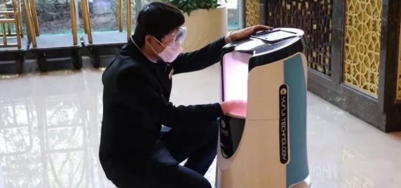 在抗击疫情过程中,有众多疑似病例暂时不能确诊,住在医院中不但有感染风险,也会耽误其他病人的治疗,很多人员被安排在酒店进行自主隔离。云迹科技开发的“润”系列酒店机器人具备自主送物能力,能够有效减少人与人之间交叉感染的可能,充当起了为隔离患者送餐送物的志愿军角色。与一般的送餐机器人不同,酒店机器人的送货范围更大,具备搭乘电梯、24小时服务等复杂功能。云迹科技自主研发的“润”系列酒店机器人搭载自主研发的机器人底盘操作系统和物联设备芯片,搭载并行计算单元和各类传感设备,具备听、说交互能力和运动能力,能够提供迎宾引导、客房送物服务,并具备自主搭乘电梯、自动拨打电话、信息播报宣传和自主充电等功能。