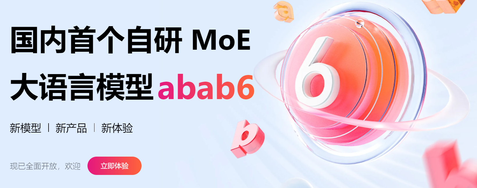 稀宇科技(Minimax)全量发布大语言模型abab6,是国内第一个千亿参数量以上、基于MoE架构的大语言模型。abab6可从训练语料中学到更精细的规律,完成更复杂的任务。