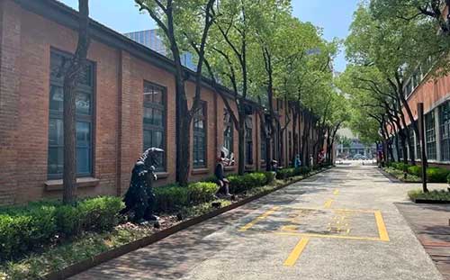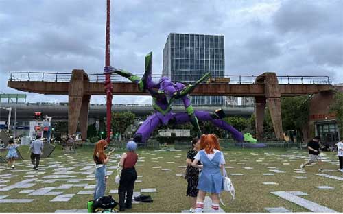 包括林荫大道、EVA广场、二次元粉丝打卡区、嘉美麗德等,保留原厂区特色林荫大道和部分老厂房设备,通过景观设计和室外总体改造增设互动广场,提升园区综合环境;EVA初号机及其他动漫雕塑配套,完成雕塑基础工程,使之成为动漫影视拍摄的有效载体。