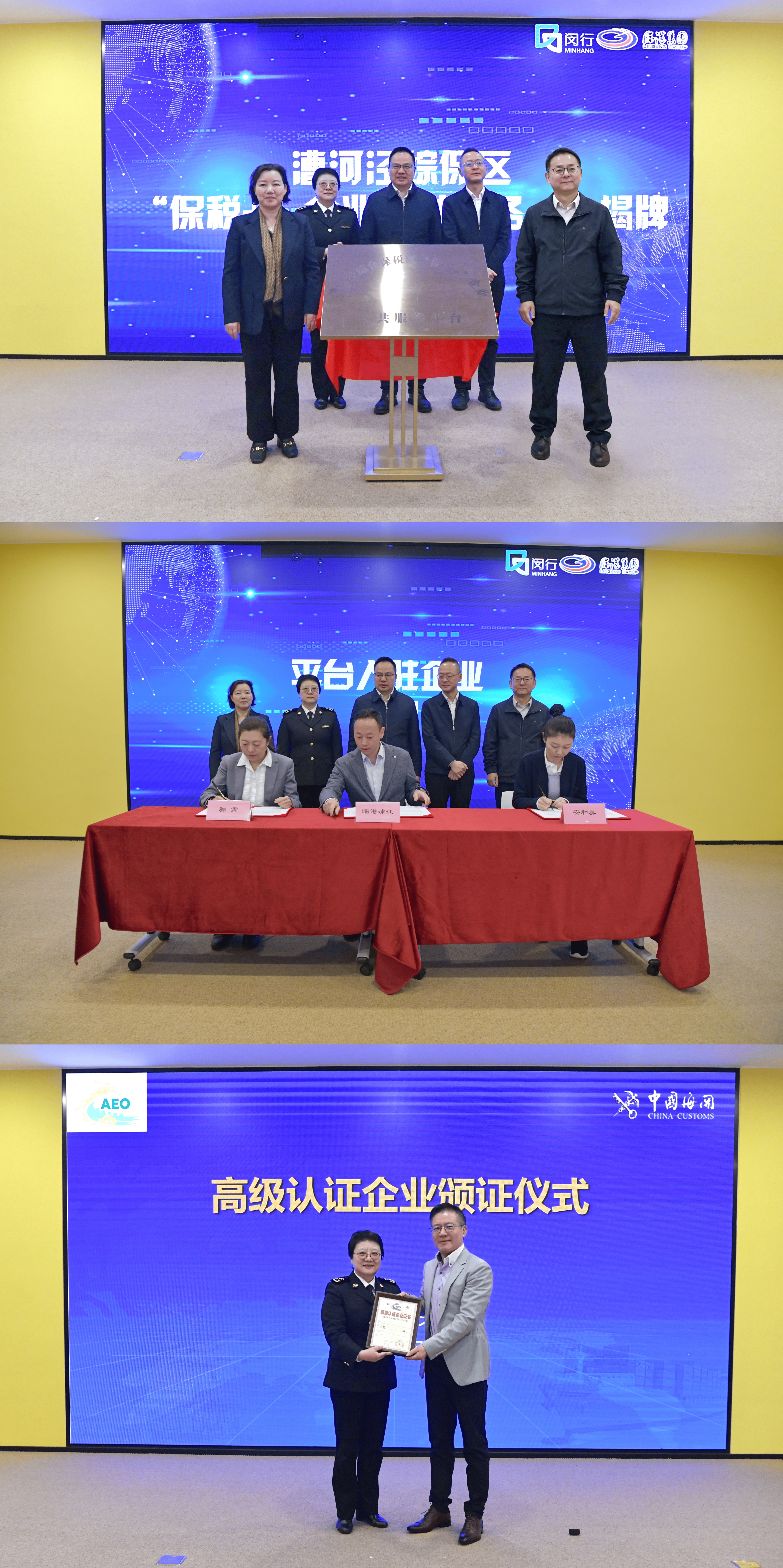 4月22日,以“政策全解读·服务零距离”为主题的闵行区企业“出海”政策培训暨“保税+”企业公共服务平台发布活动在漕河泾综合保税区举行。活动正式推出“保税+”企业公共服务平台,并现场开展了首批企业入驻签约、AEO认证企业颁证及企业“出海”政策培训等环节。闵行区副区长可晓林、临港集团副总裁陈浩、龙吴海关负责人出席活动。